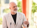 Prime Minister Edi Rama speaking in a press conference during the presentation of the now border program with North Macedonia 'One Stop Shop'. The program aims to facilitate the border procedures for easier passage of people and goods between the two countries.