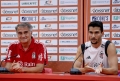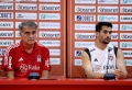 The coach of the Turkish team of Besiktas, Senol Gunes and player Necip Uysal speaking during a press conference before the match against Tirana, valid for the second round of eliminations for the UEFA Conference League group stage.