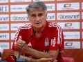 The coach of the Turkish team of Besiktas, Senol Gunes speaking during a press conference before the match against Tirana, valid for the second round of eliminations for the UEFA Conference League group stage.