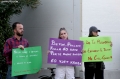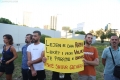 Members of the Bashke Movement hold sings during a protest against the Tirana Mount project, whose works have begun behind the Palace of Culture. Members of the movement, as well as other citizens, have expressed their opposition to the destruction of the park.