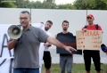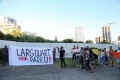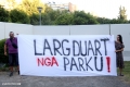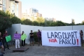 BASHKE MOVEMENT PROTESTS AGAINST TIRANA MOUNT - Members of the Bashke Movement hold a banner during a protest against the Tirana Mount project, whose works have begun behind the Palace of Culture. Members of the movement, as well as other citizens, have expressed their opposition to the destruction of the park.