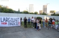 Members of the Joint Movement and citizens during a protest against the Tirana Mount project, whose works have begun behind the Palace of Culture. They have spoken against the destruction of the park.