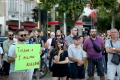 Members of the Joint Movement and citizens marching towards the Tiran municipality during a protest against the Tirana Mount project, whose works have begun behind the Palace of Culture. They have spoken against the destruction of the park.