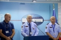 Head of the Tirana Police Directorate, Tonin Vocaj and Deputy Director for order and security in the Tirana Police, Luigj Vathi speaking during a press conference where they spoke about the completion of an anti-drug operation. 5 people were arrested for ecstasy trafficking from Kosovo to Tirana.