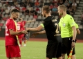Tedi Cara of Partizan celebrates scoring a goal during the football match, Partizani vs Valmiera of Latvia, 1-0, valid for the third round of the eliminators for the UEFA Conference League group stage, played at the Elbasan Arena Stadium in Elbasan.