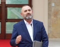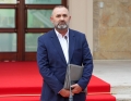 Justice Minister Ulsi Manja, speaks for the reporters in front of the Prime Minister's office, after a government meeting, regarding the approved decisions.