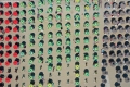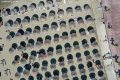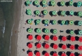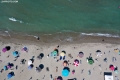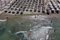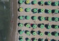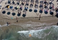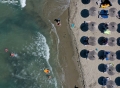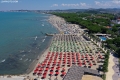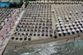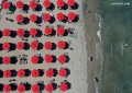 An aerial view of parasols and tourists sunbathing on the beach of Qerret in Kavaje. According to INSTAT, in the first 7 months of this year, Albania is visited by 5.1 million tourists. This number has increased by 30.6%, compared to the same period of 2022.