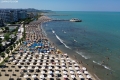 TOURISTS AT THE BEACH OF QERRET - An aerial view of parasols and tourists sunbathing on the beach of Qerret in Kavaje. According to INSTAT, in the first 7 months of this year, Albania is visited by 5.1 million tourists. This number has increased by 30.6%, compared to the same period of 2022.