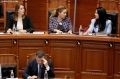 MPs Mimi Kodheli and Erion Brace during a parliamentary session. This session marked the new parliamentary session, which is the fifth for the tenth legislature.