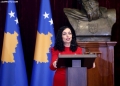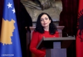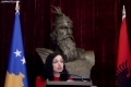 The President of Kosovo, Vjosa Osmani speaking during a joint press conference with the President of Albania, Bajram Begaj in the premises of the Presidency. The two Presidents have spoken about the cooperation between the two countries and that there should be more coordination.