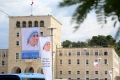 Banner with the image of Mother Teresa on the facade of the Polytechnic University of Tirana placed on the occasion of Mother Teresa's Saint's Day.