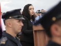 The president of the Kosovo Republic, Vjosa Osmani speaking at the funeral ceremony of the Kosovar officer Afrim Bunjaku, in the village of Samadrexhe in Vushtrri. Bunjaku was killed in the line of duty in the village of Bajnske in Zvecan, north of Kosovo.