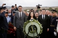 Minister for Europe and Foreign Affairs, Igli Hasani and Minister of the Interior, Taulant Balla with a wreath of flowers at the funeral ceremony of the Kosovar officer Afrim Bunjaku, in the village of Samadrexhe in Vushtrri. Bunjaku was killed in the line of duty in the village of Bajnske in Zvecan, north of Kosovo.