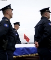 BURIAL CEREMONY FOR AFRIM BUNJAKU - Police officer carrying the coffin of officer Afrim Bunjaku during the burial ceremony, in the village of Samadrexhe in Vushtrri. Bunjaku was killed in the line of duty in the village of Bajnske in Zvecan, north of Kosovo.