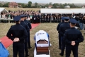 Police officers at the funeral ceremony of the Kosovar officer Afrim Bunjaku, in the village of Samadrexhe in Vushtrri. Bunjak was killed in the line of duty in the village of Bajnske in Zvecan, north of Kosovo.