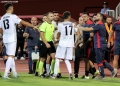 A moment of tension during the football match Vllaznia vs Egnatia, 0-2, valid for the Albanian Super Leage, played at the Loro Borici stadium in Shkoder.