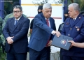 The General Director of the State Police, Muhamet Rrumbullaku, the Director of the Tirana Police, Tonin Vocaj and the Director of the Prosecution of the Elbasan Judicial District, Kreshnik Ajazi, after a press conference where the result of the operation Never Forget. After the operation, Artan Tafani, a member of Laert Haxhiut's gang, was also arrested. The Police Director said that this mega-operation was finalized in full investigative secrecy, where the data is kept in full confidentiality.