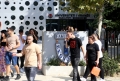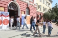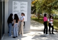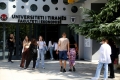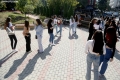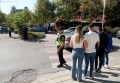 Students outside of the Polytechnic University of Tirana during the first day of the academic year. About 20 thousand female students will sit for the first time in university auditoriums.