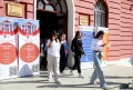 Students outside of the Faculty of History and Philology during the first day of the academic year. About 20 thousand female students will sit for the first time in university auditoriums.