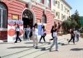 Students exiting the Faculty of History and Philology during the first day of the academic year. About 20 thousand female students will sit for the first time in university auditoriums.