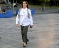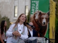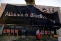 Minister of Tourism and Environment, Mirela Kumbaro during an activity in front of the national historical museum, where its mosaic has been re-conceptualized as an image showing the Albanian flora and fauna. The activity marks the launch of the campaign Albania is biodiversity, which aims at discussions and reflections on the nature of Albania.
