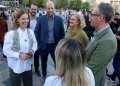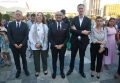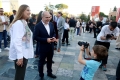 The Minister of Tourism and Environment, Mirela Kumbaro and the Ambassador of Germany in Tirana, Karl Bergner, the Chargé d'Affaires of the European Union in Tirana, Ambassador Luigi Soreca and the CEO of Vodafone, Balazs Revez during an activity in front of the national historical museum, where its mosaic has been re-conceptualized as an image showing the Albanian flora and fauna. The activity marks the launch of the campaign Albania is biodiversity, which aims at discussions and reflections on the nature of Albania.