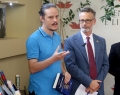 Swedish Ambassador in Tirana, Niklas Strom, writer Tobias Xhaxhiu during an event organized at the National Book and Reading Center to follow the awarding of the Nobel Prizes in literature. This year's winner was Norwegian Jan Fosse.