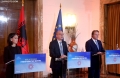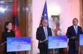 The Minister for Europe and Foreign Affairs, Igli Hasani, the Minister of Foreign Affairs of the Federal Republic of Germany, Annalena Baerbock and the European Commissioner for Neighborhood and Enlargement, Oliver Varhelyi after a joint press conference after a meeting of the Foreign Ministers of the EU and those of the Western Balkans in Tirana, in the framework of the Berlin Process. This meeting precedes the Berlin Process Summit that will be held in Tirana on October 16, 2023. The second session of the meeting and the family photo was boycotted by Serbian Foreign Minister Ivica Dacic after debates with German Minister Baerbock regarding the events in Kosovo.