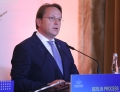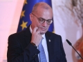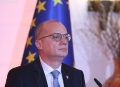 European Commissioner for Neighborhood and Enlargement, Oliver Varhelyi speaking during a joint press conference after a meeting of the Foreign Ministers of the EU and those of the Western Balkans in Tirana, in the framework of the Berlin Process. This meeting precedes the Berlin Process Summit that will be held in Tirana on October 16, 2023. The second session of the meeting and the family photo was boycotted by Serbian Foreign Minister Ivica Dacic after debates with German Minister Baerbock regarding the events in Kosovo.