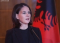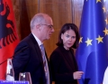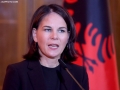 The Minister for Europe and Foreign Affairs, Igli Hasani, the Minister of Foreign Affairs of the Federal Republic of Germany, Annalena Baerbock after a joint press conference after a meeting of the Foreign Ministers of the EU and those of the Western Balkans in Tirana, in the framework of the Berlin Process. This meeting precedes the Berlin Process Summit that will be held in Tirana on October 16, 2023. The second session of the meeting and the family photo was boycotted by Serbian Foreign Minister Ivica Dacic after debates with German Minister Baerbock regarding the events in Kosovo.