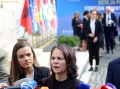 MINISTERS SPEAK TO THE JOURNALISTS - The Minister of Foreign Affairs of the Federal Republic of Germany, Annalena Baerbock speaking to the journalists after a meeting of the Foreign Ministers of the EU and those of the Western Balkans in Tirana, in the framework of the Berlin Process. This meeting precedes the Berlin Process Summit that will be held in Tirana on October 16, 2023. The second session of the meeting and the family photo was boycotted by Serbian Foreign Minister Ivica Dacic after debates with German Minister Baerbock regarding the events in Kosovo.