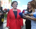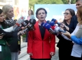Deputy Prime Minister of Kosovo, Donika Gervalla speaking to the journalists after a meeting of the Foreign Ministers of the EU and those of the Western Balkans in Tirana, in the framework of the Berlin Process. This meeting precedes the Berlin Process Summit that will be held in Tirana on October 16, 2023. The second session of the meeting and the family photo was boycotted by Serbian Foreign Minister Ivica Dacic after debates with German Minister Baerbock regarding the events in Kosovo.