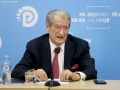Former Prime Minister, Sali Berisha speaking during a press conference from the headquarters of the democratic party. Berisha attacked Prime Ministers Edi Rama and Lulzim Basha, while saying that Rama is afraid of the report of the May 14 elections.