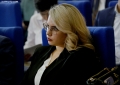 Judge Alma Kodraliu entering the general meeting of the judges of the Republic of all levels to elect the new representatives of the High Judicial Council. They will replace three of the members whose mandate ended, Brikena Ukperaj from the Court of Appeal and Dritan Hallunaj and Marcela Shehu from the First Instance.