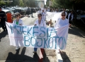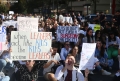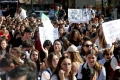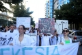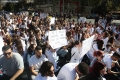Medical students during the march to the Ministry of Education. They have gathered near the Faculty of Medicine to then march along Dibra Street and stop in front of the Ministry of Education where they have opposed the law that forces them to work for 3-5 years in their country after completing their studies or pay full school fee. The students have refused the fee of 240,000 lek if they do not refuse the work contract for 2-5 years in Albania.