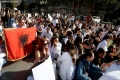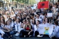 Medical students protesting before the Ministry of Education. They have gathered near the Faculty of Medicine to then march along Dibra Street and stop in front of the Ministry of Education where they have opposed the law that forces them to work for 3-5 years in their country after completing their studies or pay full school fee. The students have refused the fee of 240,000 lek if they do not refuse the work contract for 2-5 years in Albania.