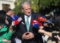 Former Prime Minister Sali Berisha speaking to journalists before entering a parliamentary session. During it, there were debates regarding the approach towards Kosovo after the event in Banjske.