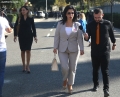 MPs Kasem Mahmutaj, Greta Bardeli and Merita Bakiu entering a parliamentary session. During it, there were debates regarding the approach towards Kosovo after the event in Banjska.
