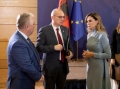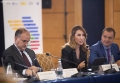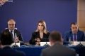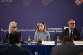 The Charge d'Affaires of the European Union in Tirana, Ambassador Luigi Soreca, the Permanent Secretary of the Regional Cooperation Council, Majlinda Bregu and the member of the parliament of North Macedonia, Ljupco Prendzov speaking during a parliamentary conference in the framework of the Berlin Process. This is the first meeting held during the week of the Berlin Process Summit, which tries to give another direction to the role of the parliaments of the six countries of the Western Balkans in the integration process.