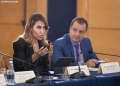 The Chairperson of the Parliamentary Committee for European Affairs, Jorida Tabaku, and the Minister for Europe and Foreign Affairs, Igli Hasani speaking during a parliamentary conference in the framework of the Berlin Process. This is the first meeting held during the week of the Berlin Process Summit, which tries to give another direction to the role of the parliaments of the six countries of the Western Balkans in the integration process.