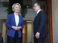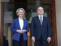 The President of the Republic, Bajram Begaj and the President of the European Commission, Ursula Von Der Leyen during an official reception ceremony at the Presidency. von der Leyen arrived in Albania a day before the Summit of the leaders of the Berlin Process in Tirana.