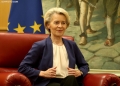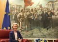 President of the European Commission, Ursula Von Der Leyen during an official reception at the Presidency. Von der Leyen arrived in Albania a day before the Summit of the leaders of the Berlin Process in Tirana.