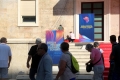 People walking next to the posters for the Summit of Leaders in the framework of the Berlin Process, in Tirana one day before its holding. This is the first time that this summit is held in a non-EU state, where the heads of state of the EU and the Western Balkans will gather.