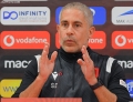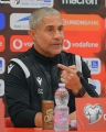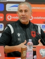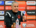 The coach of the Albanian national football team, Sylvinho speaking at a press conference before the friendly match with Bulgaria.
