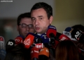 Kosovo Prime Minister, Albin Kurti speaking to journalists in front of the Tirana pyramid, after the leaders' summit in Tirana, in the framework of the Berlin Process. Kurti spoke about the summit and his meeting with the Serbian Prime Minister, Ana Brnabic.