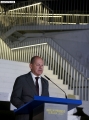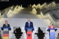 Prime Minister Edi Rama speaking during a joint press conference of himself, Scholz and Von Der Leyen in front of the Tirana pyramid, after the leaders' summit in Tirana, in the framework of the Berlin Process. They talk about the achievements of the summit, developments in the region and other issues.