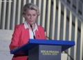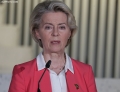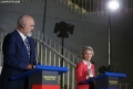 President of the European Commission, Ursula Von Der Leyen speaking during a joint press conference of her, Rama and Scholz in front of the pyramid of Tirana, after the leaders' summit in Tirana, in the framework of the Berlin Process. They talk about the achievements of the summit, developments in the region and other issues.
