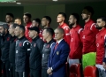 The players of both teams pose before the friendly football match, Albania vs Bulgaria, 2-0, played at the Air Albania stadium in Tirana.