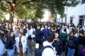 Medical students in front of the Faculty of Medicine gathered in protest before marching towards the Ministry of Education. They have gathered near the Faculty of Medicine to then march along Dibra Street and stop in front of the Ministry of Education where they have opposed the law that forces them to work for 3-5 years in their country after completing their studies or pay full school fee. The students have refused the fee of 240,000 lek if they do not refuse the work contract for 2-5 years in Albania.