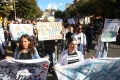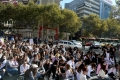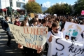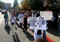 Medical students marching towards the Ministry of Education in protest. They have gathered near the Faculty of Medicine to then march along Dibra Street and stop in front of the Ministry of Education where they have opposed the law that forces them to work for 3-5 years in their country after completing their studies or pay full school fee. The students have refused the fee of 240,000 lek if they do not refuse the work contract for 2-5 years in Albania.